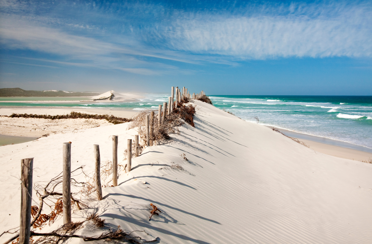 Renowned for its pristine white sandy beaches, Struisbaai boasts the longest continuous stretch of beach in the Southern Hemisphere, stretching for over 14 kilometers along the coast. The town is famed for its iconic red and white striped lighthouse, standing tall as a beacon of maritime history against the backdrop of azure skies and rolling waves.